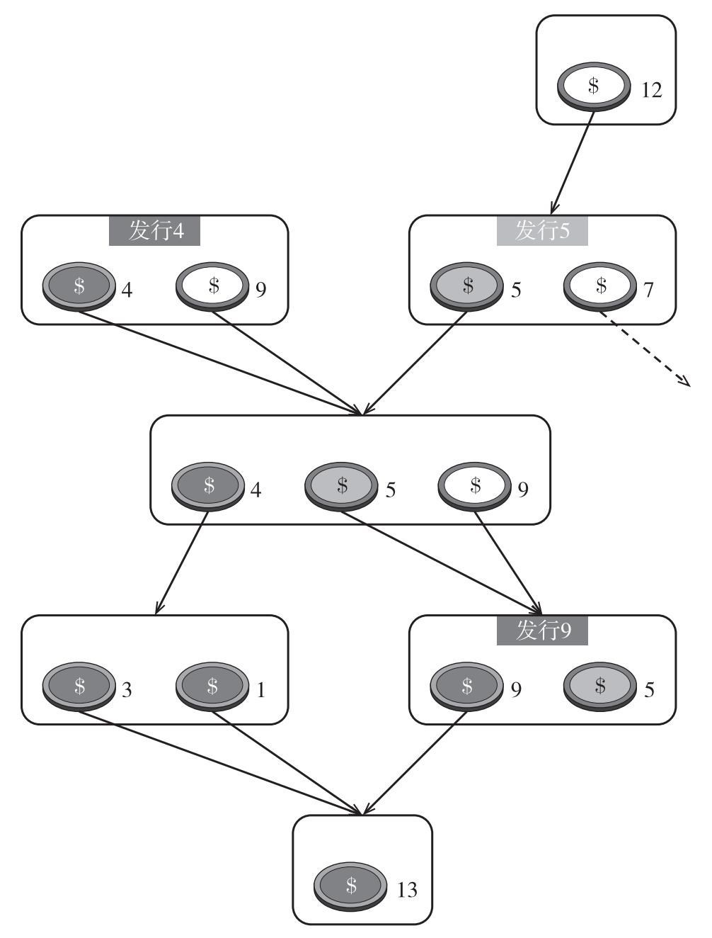注:交易图谱描述了染色币的发行和传播过程。