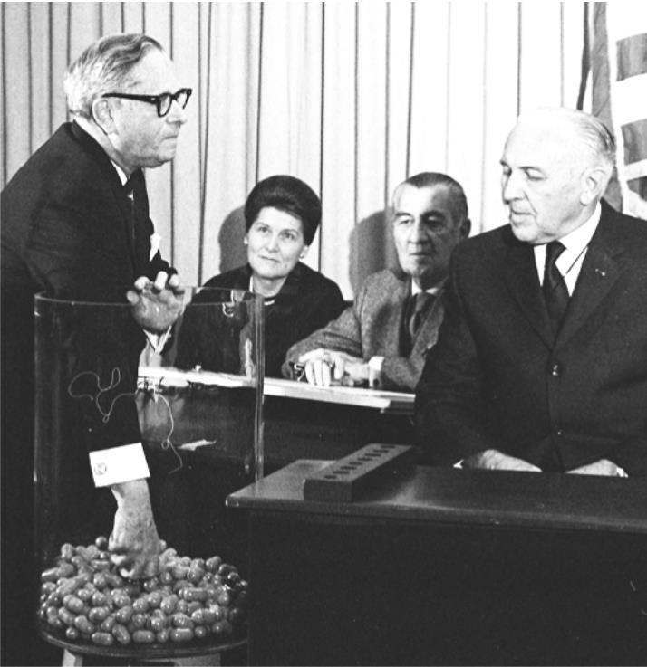 另一个更加严肃的案例是1969年的美国征兵选秀,用于决定哪些年轻人会去参军,大部分被选中的人事后都被派去参加了越南战争。同样使用了一个类似于NBA选秀的方法,由美国国会派出的代表来主持选秀并通过电视直播(如图9.6)。他们在一个大的塑料桶中放了很多小球,每个小球包含了一个数字,然后轮流从桶中把这些数字小球取出来,根据数字所代表的生日来决定优先级,根据这个优先级挑选合格的年轻人参军。