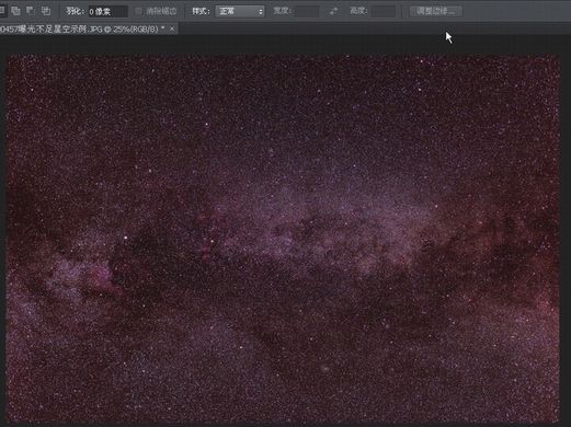 在这里我们使用下图来进行介绍。这是一张银河的照片,但是因为某些原因曝光有些不足,银河不是很明显。不过,经过简单的几步处理,就能让银河变得很灿烂。