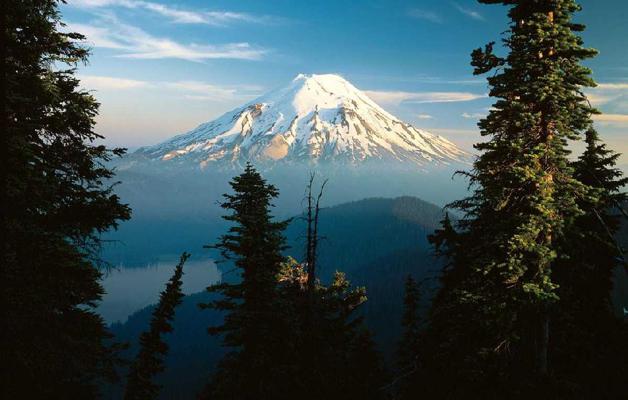 图 3.30 冰斗中的冰斗湖及其后的刃脊。照片中由冰川形成的湖位于华盛顿州冰川峰火山自然保护区。(© Bob & Ira Spring )