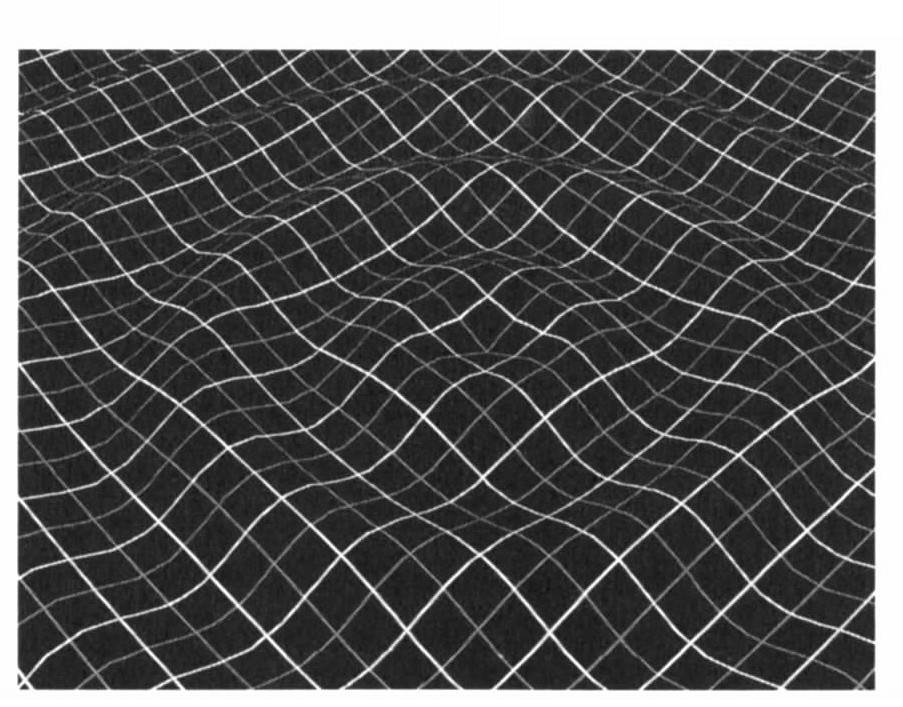 广义相对论告诉我们的一件重要事情是质量和能量可以使时空结构发生蜷曲。我们在图3.10中曾展示过太阳周围的弯曲情况。但是,静态的图片不能说明所有的问题,它有一定局限性,因为静态图片不能告诉我们当质量和能量发生转移或者以某种方式改变其自身构成时,空间的蜷曲将如何演化。3要是你非常老实地站在一张弹簧床上,弹簧床就会保持固定的弯曲形状;而一旦你开始乱蹦乱跳,弹簧床就会跟着上下起伏。广义相对论也能给出与此类似的预言,如果物质处于完美的静止状态,空间就会保持固定的蜷曲形状,如图3.10所示的那样;但是一旦物质运动起来,空间的结构就会有所起伏。爱因斯坦在1916~1918年间认识到这一点,就在那个时期,他利用时新的广义相对论方程证明——就像在广播天线上来来回回的电荷会产生电磁场一样(无线电波与电视信号就是这样产生的)——物质的猛烈涌动(比如超新星爆发)会导致引力波的产生。因为引力就是曲率,所以引力波就是曲率波。将一块鹅卵石投入池塘会激起层层涟漪,向外扩散;旋转的物质会导致向外传播的空间涟漪。根据广义相对论,遥远天际中的超新星爆发就像投入时空这片巨大的池塘中的鹅卵石一样,会激起层层涟漪,如图14.2所示。这张图展示了引力波与众不同的一个重要性质:不同于电磁波、声波和水波这些穿行于空间传播的波,引力波就通过空间自身传播。引力波传播的就是空间本身的扭曲波动。