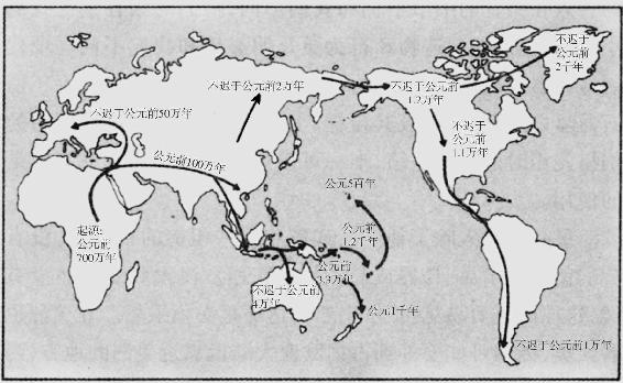 人类在这方面的全部历史,在人类于大约700万年前起源后的最初500万或600万年中,仍然局限于非洲。首先走出非洲的人类祖先是直立人,这已从东南亚爪哇岛上发现的化石得到证明,这些化石通常称之为爪哇人(见图1.1)。年代最久远的爪哇“人”化石——当然,它们实际上可能是爪哇女人的化石——其年代通常被认为约100万年前。然而,最近有人认为,其年代实际上是1.8百万年前。(严格地说,直立人这个名称属于这些爪哇化石,而归入直立人一类的非洲化石也许应该有一个不同的名称。)目前,对于欧洲人类公认的最早证据产生在大约50万年前,但也有人认为时间可能更早。人们当然可以假设,人类既然可以移居亚洲,自然也可以移居欧洲,因为欧亚大陆是一个大陆板块,没有什么重大屏障把它分隔开。