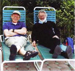 国际合作:英国和美国的科学家率先完成第一个复杂生物(线虫)的基因组定序工作;这个计划的主持人瓦特斯顿(图左)和萨尔斯顿仍会找时间轻松一下。