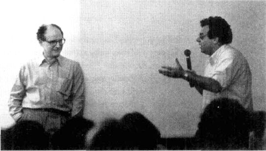 催生人类基因组计划:1986年,大力支持这项计划的哈佛大学教授吉尔伯特(左)和斯坦福大学的波兹坦在冷泉港实验室争论的情景。