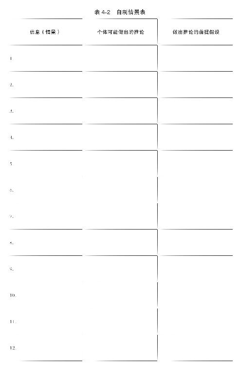 批判性思维最重要的技能之一,是区分一项陈述或情景的真实意义与人们由此做出的虚假推断。再次说明,推论是导向结论的一个思维阶段。例如,由太阳升起,我们会推论出是早晨。批判性思考者会试图监督自己的推理过程,不多不少地针对某一情景的含义做出推论。如果我生病看医生,自然希望医生由我的症状精确地推断出我的病症。例如,我不希望当我被病毒感染需要抗生素治疗时,医生却诊断我只是患了感冒而不需要药物治疗。我的症状预示着我患了某种疾病,而这又进一步说明我需要特定的治疗。我希望医生能够正确推断我的病症,然后采用恰当的治疗方法。