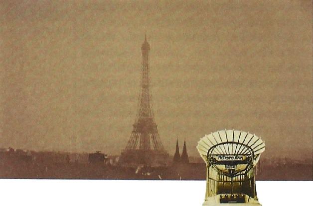 巴黎的标志艾菲尔铁塔和埃克特·古玛(Hétor Guimard)设计的巴黎地铁入口