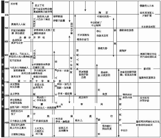 但是,世界四大文明之间的均势状态的确经历一系列震荡,这些震荡是这个时期世界历史的重大标志。首先希腊文明、其次印度文明在发源地之外得到广泛传播。但是正如中国和日本的印度化,中东地区的希腊化最终被证明是表面的、暂时的现象。在这两个例子中,当地的强烈反对最终导致前辈饥渴地吸收的外来文化因素付诸东流。接着,伊斯兰教兴起,并成功地首先向整个古代中东、北非和西班牙(632~1000年),然后向印度、东欧、中亚(1000~1453年)扩张,世界平衡格局第三次遭到威胁。印度教的印度最终(1565年)丧失了政治独立。因此,穆斯林统治者与皈依伊斯兰教的人(主要来自印度低级种姓)联合起来,限制和压迫印度教徒,这对印度教后来的发展产生了深远影响。