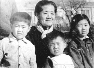 祁淑洪之母定氏老人与两个外孙及一个外孙女的合影