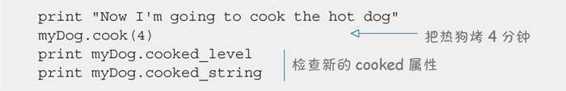 myDog = HotDogprint myDog.cooked_levelprint myDog.cooked_stringprint myDog.condiments
