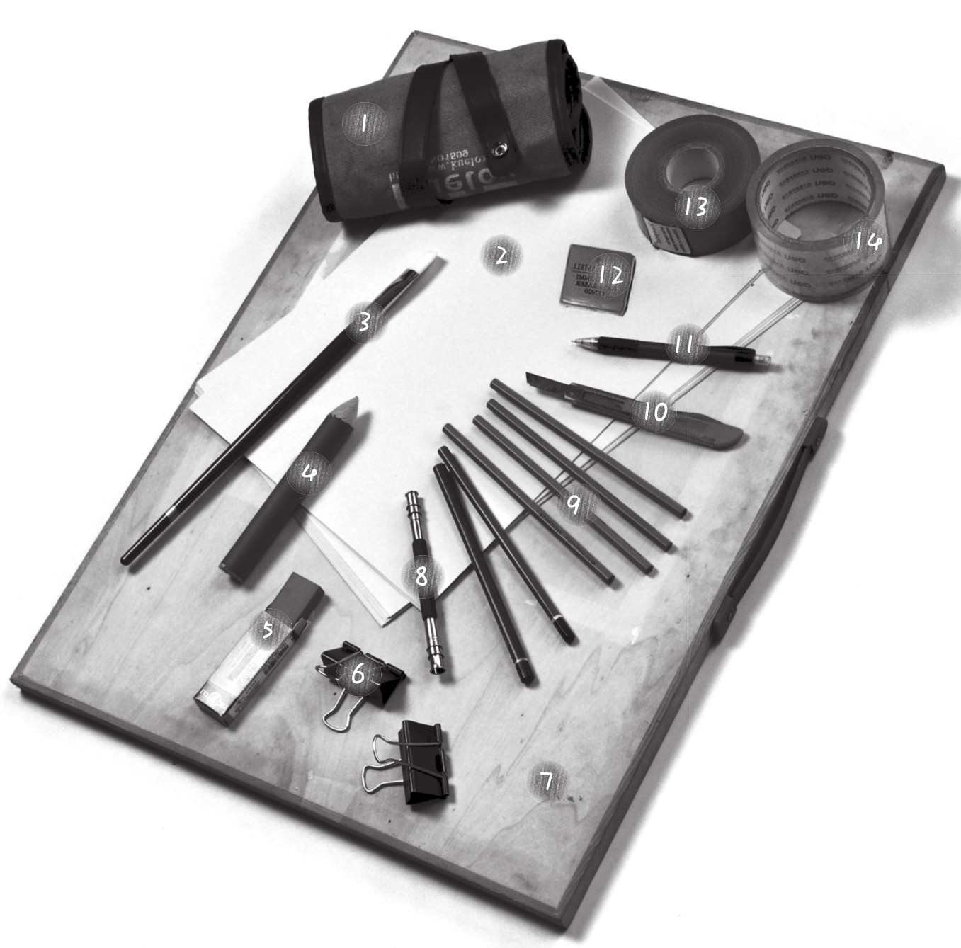 绘画工具主要包括纸张、铅笔、橡皮、美工刀等,还包括一些辅助工具,如画夹、图钉、胶带等。在纸张的选择方面,由于纸张的厚度、纹理、色泽各不相同,因此绘画者可根据用途选择不同的纸张。