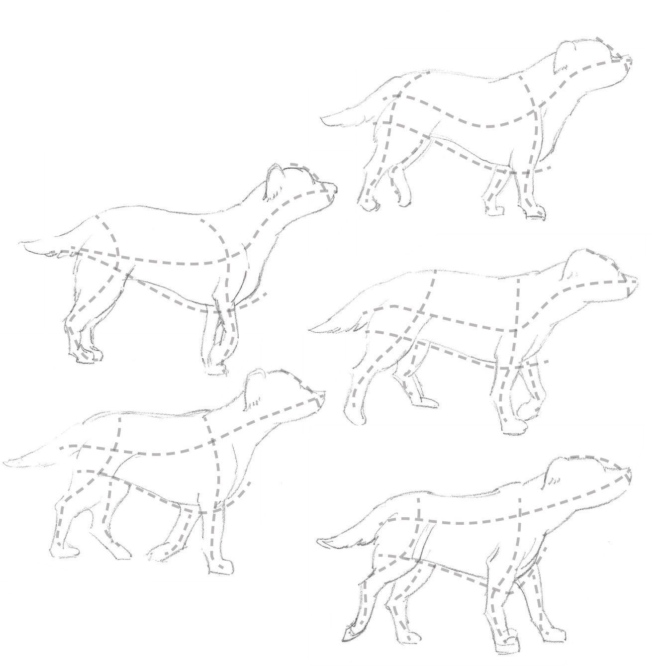 要画好动物的各种动态,头和躯干的关系非常重要。爬行动物的四肢灵活,运动时,前后脚形成不同的形态,表现形式较多。绘画时要注意抓住主要的动势线进行整体的动势绘画。