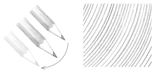 素描中最常用到的线条排列形式是平行直线的排列。较多的直线排列在一起可以形成面,而线条排列的疏密会影响面的颜色变化。绘画时,每条线之间的间距要尽量保持一致。