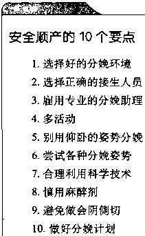 这种在产程中持续使用电子胎儿监测仪的做法在现在看来并非必要,也不值得提倡。取而代之的做法是,如果产妇并没有其他并发症,助产士会每隔二三十分钟来检査产妇的情况,了解腹中胎儿的状态。(研究显示,与助产士间歇性的监测相比,持续使用电子仪器来监测产妇,对产妇的顺产并没有什么帮助,反而会增加剖腹产的几率。)如果必须使用电子胎儿监测仪,也不能妨碍产妇到处走动或者调整分娩姿势。现在有一种更先进的监测仪,使用无线电传输信号,接收终端收到信号后会在显示器上显示出监测结果。产妇可以把这种监测器带在身上自由走动。如果必须输液,你可以要求肝素锁(一种连接针头的装置,不用依靠输液架,你可以一边输液一边四处走动)》8.慎用麻醉剂在产前,你对镇痛的方法了解得越多,你的分娩就会越顺利、越安全。你在那些分娩课程中可以了解到许多可用的方法(包括自然的或药物的),你会明白,麻醉(即用药物来减轻疼痛)是一种好办法,但不能替代自然的镇痛方法。没有任何一种药物可以毫无风险地缓解疼痛。过量使用麻醉剂以致失去知觉、不能动弹,只会延长你的产程或导致剖腹产。要知道,产程太长对产妇和婴儿都不好。你可以事先和你的助产士讨论好麻醉的剂量,确保这个剂量在能帮助你减轻疼痛的同时,还能让你的身体保持一定的敏感度和灵活性,可以在分娩过程中随时调整姿势以便用力。无论什么镇痛方法,只要能帮助你更顺利、更舒适地生下健康的宝宝,那就是可行的,因为分娩经历将会成为你一生的回忆。