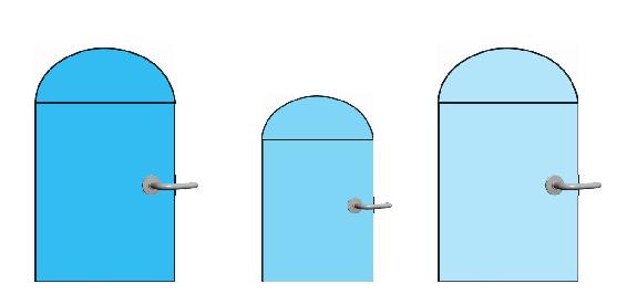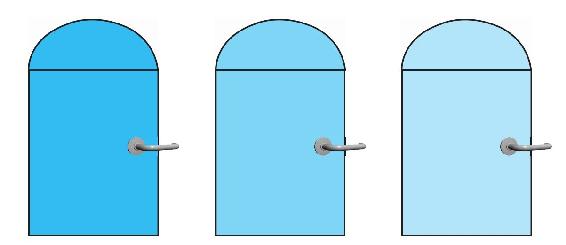我们继续来看刚才的实验,如图9-2所示,这时有了新的游戏规则:你每点一次屏幕,除了你所在房间以外的其他两扇房门的尺寸会跟着减少1/12。也就是说,如果你多几次不点另外两扇房门的话,它们就会完全消失掉。