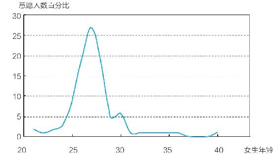 从我曾做过的一项调查中可以看出,女生们26岁一过,便已经达到想要出嫁的峰值了,如图9-3所示。