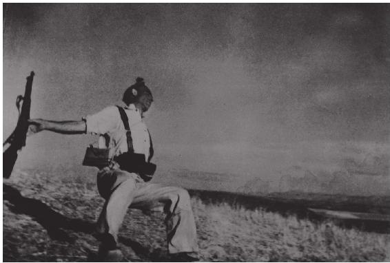 他的照片让人不觉得技巧的重要性,而是显露出一股用生命才能换取的勇气。这种大勇的精神使他的照片被任何派别的人都奉为经典,没有人会批评他表现得够不够精致、传达得够不够有力、裁切得够不够紧凑、快门机会够不够恰到好处、调子够不够丰富。他最出名的照片《中弹了》,品质相当差,而另一帧《诺曼底登陆》,甚至是模糊不清。焦距、光圈、快门在他的照片里都是无用的名词,他是用生命在拍照,而不是用机器,因此,卡帕是被一般人称作“伟人”的唯一摄影家。