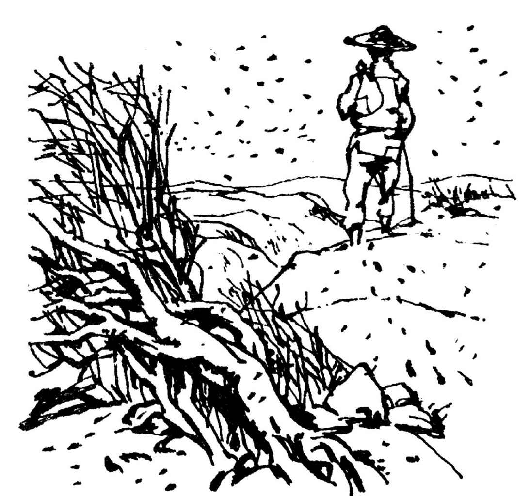 12岁少年的双脚早已麻木,像有千万枚尖针从下徐徐往上扎。疼痛感变钝了。小腿肚下仿佛接的是两截木头。我艰难地彳亍,完全靠的是我的大腿,靠我生命的本能。